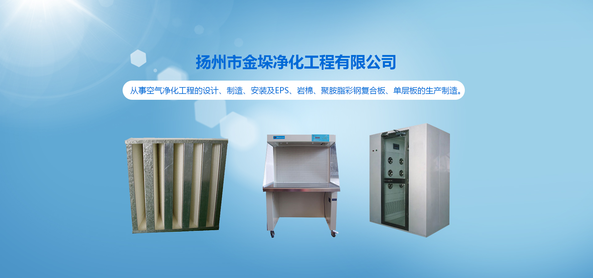 從事空氣凈化工程的設計、制造、安裝及EPS、巖棉、聚胺脂彩鋼復合板、單層板的生產制造